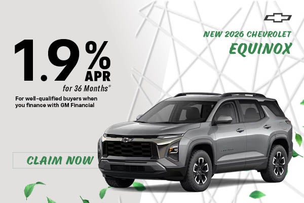 *1.9% APR for 36 months for well-qualified buyers when financed w/GM Financial. Monthly payment is $28.60 for every $1000 you finance. Average down payment is 18%. Some customers will not qualify. Take new retail delivery by 4/30/26.