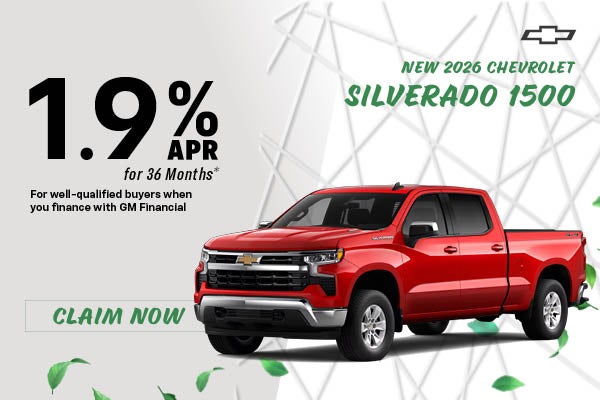 *1.9% APR for 36 months for well-qualified buyers when financed w/GM Financial. Monthly payment is $28.60 for every $1000 you finance. Average down payment is 18%. Some customers will not qualify. Take new retail delivery by 4/30/26.