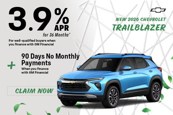 *3.9% APR for 36 months. Monthly payment is $29.48 for every $1,000 you finance. Example down payment: 11.8%. Must finance with GM Financial. Down payment required at signing, if applicable. Not available in PA. Some customers may not qualify. Not available with lease and some other offers. Take new retail delivery by 4/30/26.