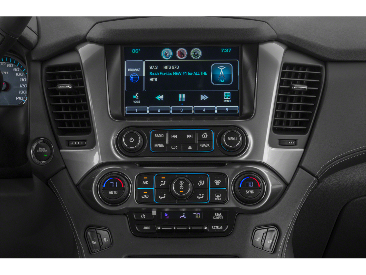 Max Trailering Package: Standard Suspension Package; 3.42 Rear Axle Ratio; Integrated Trailer Brake Controller. Preferred Equipment Group 1LT: Extended-Range Remote Keyless Entry; Memory Settings; 2nd Row 60/40 Split-Folding Manual Bench; Forward Collision Alert Sensor Indicator; Leather-Appointed Seat Trim; Heated Front Reclining Bucket Seats; Power Liftgate; Rear Park Assist; Floor Console with Storage Area; Driver and Front Passenger Airbags; Auto-Dimming Inside Rearview Mirror; Power-Adjustable Accelerator and Brake Pedals; Lane Departure Warning and Safety Alert Seat; 3rd Row Manual 60/40 Split-Folding Fold Flat Bench; Universal Home Remote; Heavy-Duty Locking Rear Differential. 20" X 9" Polished-Aluminum Wheels. Chevrolet MyLink Radio with Navigation/AM/FM Stereo. **Equipment listed is based on original vehicle build and subject to change. Please confirm the accuracy of the included equipment by calling the dealer prior to purchase.**