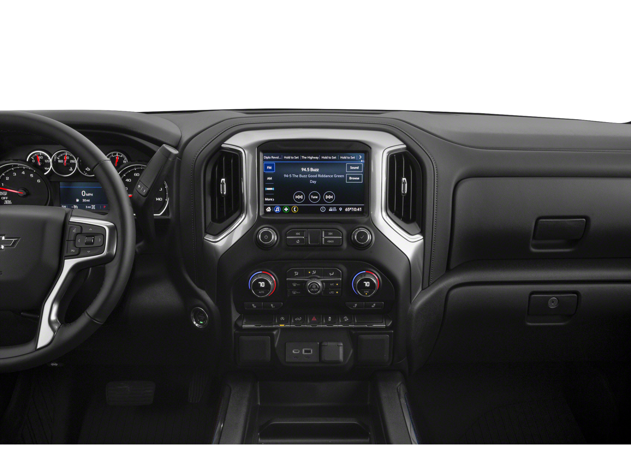 Convenience Package: Manual Tilt/telescoping Steering Column; Heated Steering Wheel; 10-Way Power Driver Seat with Lumbar; Dual-Zone Automatic Climate Control; Heated Driver and Front Outboard Passenger Seats; Cloth Rear Seat with Storage Package. Dark Essentials Package: Black Name Plates; Black Tailgate CHEVROLET Lettering. Preferred Equipment Group 2LT: LED Cargo Area Lighting; Hitch Guidance; Rear Vision Camera; Rear 60/40 Folding Bench Seat (folds Up); Cloth Seat Trim; Bluetooth® For Phone; Remote Vehicle Starter System; 2 USB Ports (first Row); Electric Rear-Window Defogger; Theft Deterrent System (unauthorized Entry); 170 Amps Alternator; Auxiliary External Transmission Oil Cooler; LT275/65R18C MT BW Tires; Compass; 4.2" Diagonal Color Display Driver Info Center; Electrical Lock Control Steering Column; Trailering Package; Front LE