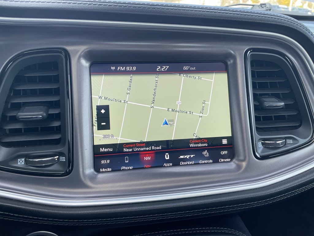 Driver Convenience Group: Blind Spot and Cross Path Detection; Power Multi-Function Foldaway Mirrors; High Intensity Discharge Headlamps. Plus Package: Door Trim Panel with Ambient Lighting; Premium-Stitched Dash Panel; Scat Pack Logo Nappa/Alcantara Seat. Quick Order Package 24G R/T Scat Pack: 3.09 Rear Axle Ratio. Quick Order Package 23G R/T Scat Pack. Power Sunroof. Uconnect 4C Navigation Radio with 8.4" Display. **Equipment listed is based on original vehicle build and subject to change. Please confirm the accuracy of the included equipment by calling the dealer prior to purchase.**